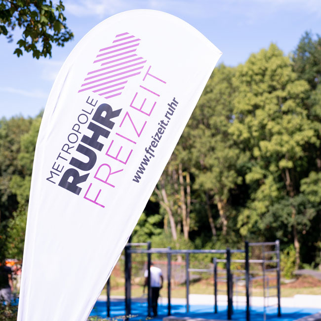 Gemeinsam mit Herrn Oberbürgermeister Daniel Schranz und Bürgermeister Klaus Strehl, Frau Nina Frense - Beigeordnete für den Bereich IV Umwelt und Grüne Infrastruktur des Regionalverband Ruhr -, dem verantwortlichen Architekt Norbert Seeger sowie dem Geschäftsführer der FMR, Jürgen Hecht, wurde die Anlage eröffnet. Auf den Flächen und Spielfeldern konnte man schon verschiedene Sportler in Aktion erleben.