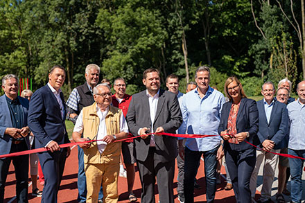 Sonnenschein die Eröffnung des Bewegungshügels statt.